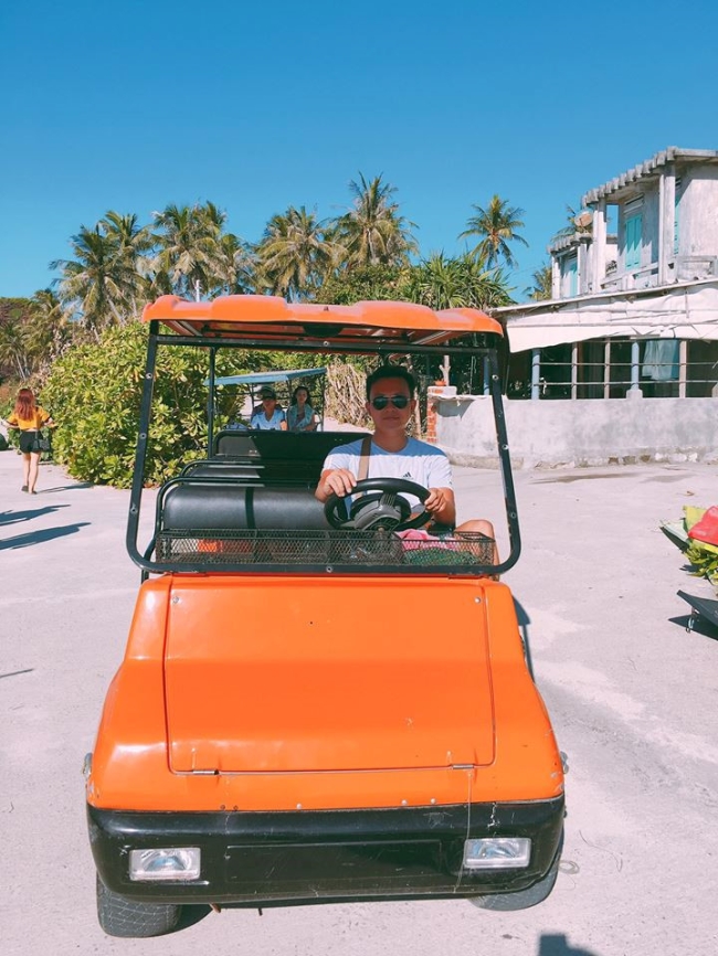 Xe điện là phương tiện di chuyển chủ yếu của khách tham quan đảo Bé. Ảnh: Nguyễn Khoa Nam.