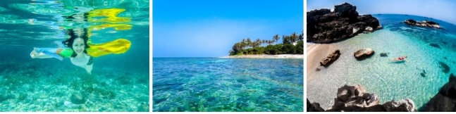 Nước biển ở đảo Bé xanh trong vắt, mang đến những giây phút thư giãn cho du khách. Ảnh: Mai Huỳnh Đại Dương, Nguyễn Khoa Nam.