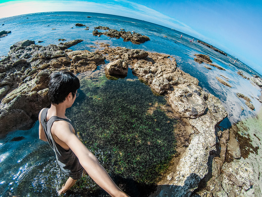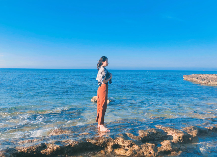 Tuy nhiên, nước biển gần bờ ở đây tương đối cạn không thích hợp để tắm biển. Ảnh: Hoàng Yến.