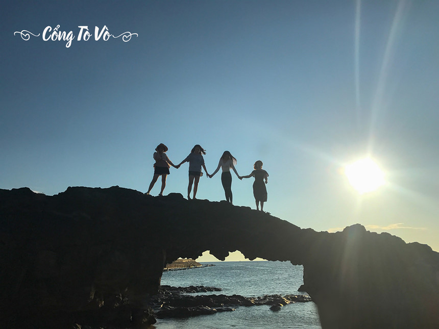 Cổng Tò Vò cũng là một kiệt tác của tạo hóa mà bạn không khỏi trầm trồ khi chiêm ngưỡng. Với chiều cao khoảng 2,5 m, cổng Tò Vò được xem là cổng vòm đá tự nhiên đẹp nhất Việt Nam. Đây chính là điểm check-in được ưa chuộng nhất của du khách khi đến Lý Sơn. Ảnh: Hoàng Yến.