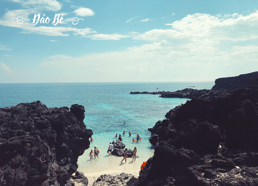 Và không thể thiếu trong chuyến đi mùa hè đến Lý Sơn là tận hưởng kỳ nghỉ tại “Maldives phiên bản Việt Nam” - đảo An Bình (tức đảo Bé Lý Sơn). Mỗi ngày đều có tàu từ đảo lớn Lý Sơn sang đảo Bé. Bạn đi xe tuk tuk một vòng quanh đảo thăm thú cảnh đẹp và dừng xe ở Bãi Sau. Bãi Sau đảo Bé là một bãi tắm tuyệt đẹp bao bọc bởi cánh cung vách đá trầm tích cao với lớp cát trắng mịn và biển ngát xanh. Ảnh: Hoàng Yến.