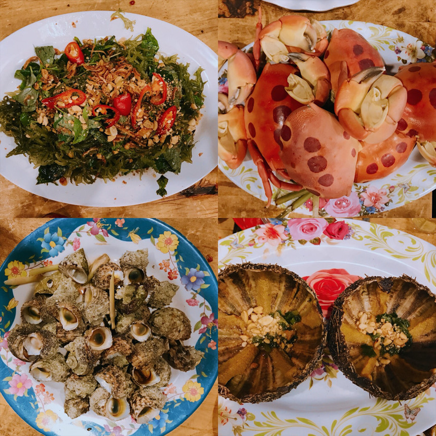 Cuối cùng, đến Lý Sơn, bạn đừng quên thưởng thức những món ăn đậm vị biển cả. Đó là ốc xà cừ, cua huỳnh đế, nhum biển, cá mú đen… và món gỏi tỏi đặc sản. Ngoài ra, chả cá Lý Sơn, bánh ít lá gai và dưa hấu hắc mỹ nhân là các món ăn nhẹ rất được du khách ưa thích. Ảnh: Hoàng Yến.