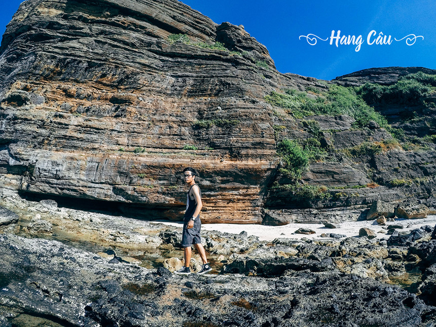 Ngay dưới chân núi Thới Lới là danh thắng rất độc đáo - Hang Câu. Giữa khung cảnh thiên nhiên hùng vĩ với một bên núi và một bên biển, Hang Câu hiện ra như một bức điêu khắc khổng lồ. Ảnh: Đức Nguyễn.